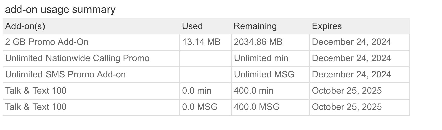 I signed up for the $100 prepaid yearly plan that includes 2GB of data/month. I signed up on Oct 24. When I log on to my account, I see that the data promo expires on Dec 24, 2024.
