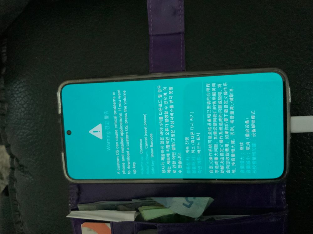 Did your phone boot up in recovery mode? Can you try turning it off, then on again careful to not press the volume up button?
