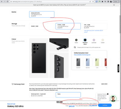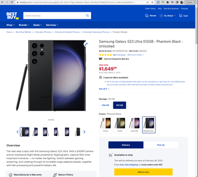 On samsung.ca, you can see that the regular retail price of the S23 Ultra 512GB Black is $1,889.99 (plus a discount of $240).