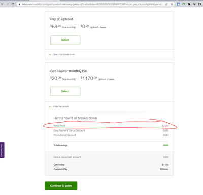 I noticed this too. They artificially increase the base price of the phone so you get hit with a massive charge if you try to get out of your contract early. It's super sleazy.
