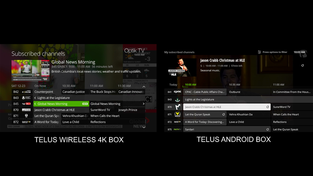 I'm testing out a Telus Android TV box alongside my Telus Wireless 4K box. I noticed that Global News BC1 (channel 845) is available on the Wireless 4K box, but not on the Android box or Telus TV+. Is there a reason for this? Will BC1 make it onto TelusTV+ and the Android boxes soon?