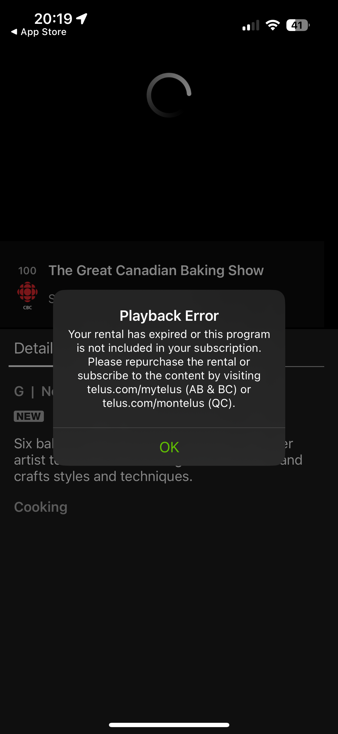 unable to access any live channels on Telus TV+. This is a recent issue that has started and I get the error message “your rental has expired or this program is not included in your subscription….. “ I am logged in as normal and can see all of my recorded programs but am unable to view any live channels