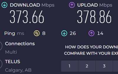 Hi simransandhu - There's a few factors that affect a speed test. First, I see that the server you are connecting to is the Wolfpaw Datacentres so the speed test that you are doing is to that specific server. If you click the "change server"  letters and do another speed test you will see that you will get a different result.