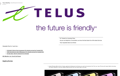"Telus" has called me multiple times with a promotion for a Cell plan and new cell phone.