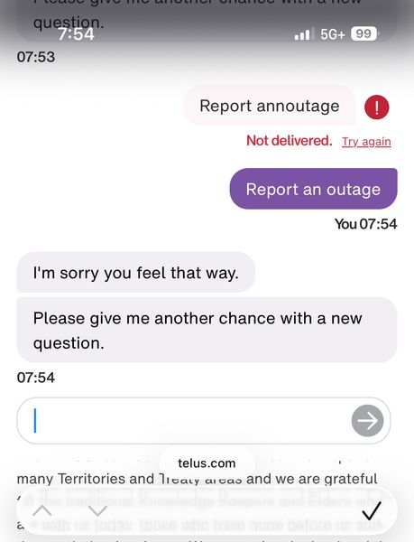 Trying to report a service outage. Here is what the chat provides as support.