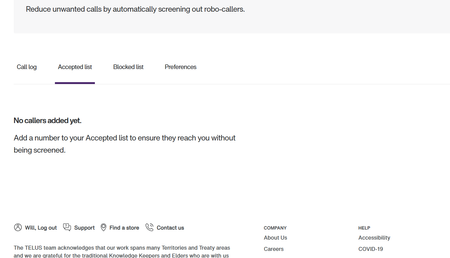 The Telus website going through my computer still doesn't work but the "My Telus" app on my phone DID allow me to add numbers the 'accepted list'.