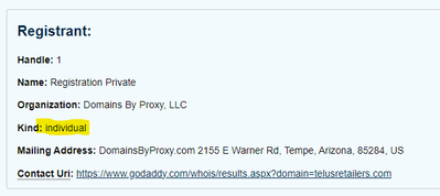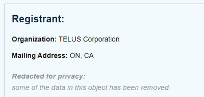 Registration info for legit Telus domains like telus.com, telusinternational.com and telushealth.com looks like this: