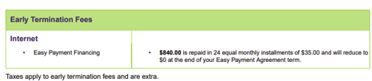 1. I had an $840 "equipment charge" on my initial 2 year contract which was paid for monthly (fine)