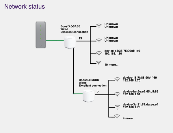 Turns out if you plug the second Boost 7 directly into the first one’s 2.5 Gb hub port, it auto-configures itself and joins the network. Both now show “wired – excellent connection.”