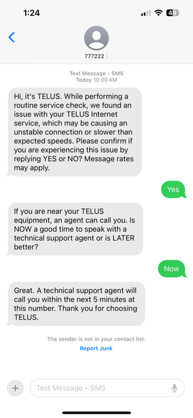 I received this text earlier today. Then received a phone call from this number +1(888)-811-2323 . I gave my address and pin to verify my account and then felt off about the whole thing so I hung up while I was put on hold, and blocked the number. I ended up receiving 4 voicemails from the man I spoke with about how something was wrong with my internet. He then sent me a text through the number 6400, the same number I get all of my monthly bill statements reminders sent from (I’ll attach screenshot). I then called 611 to see if this phone call showed up on my account and was legit but I requested a call back. When I got a call back it was from the number +1 (866) 558-2273. Both of the men I spoke to had very thick accents, there was TONS of noise in the background and no hold music, which I thought was fishy. The Second Gentleman I spoke with also couldn’t provide any proof that he was actually with Telus. Are any of these numbers legit Telus numbers? Am I overreacting?