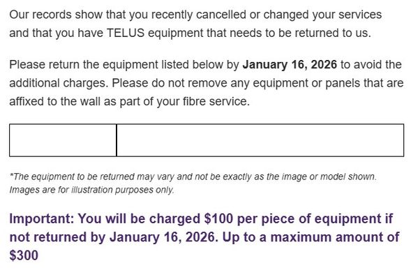 Can I please get some clarification on this? I do not have anything to send back to telus and do not want to be charged for it.