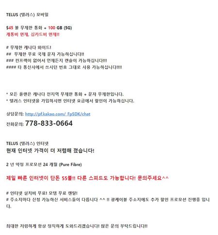 Hi Telus, I came across an online ad that seems to misrepresent Telus services and pricing, with outdated or incorrect information. The URL of the AD.: https://cafe.naver.com/yoehang/640756 The A...