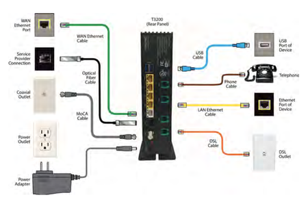 RonAKA My move to fiber. An ont (needs 120 outlet ) A 3200 modem ( needs 120 outlet ) hard wired to ont. My phone was moved to fiber and i asked for battery back up ( needs 120 )outlet . The tech will connect tour existing copper to the ont. I asked for the phone to be moved to fiber. Push button phones will work during an outage with backup. The tech will make you existing setup work . Polecat