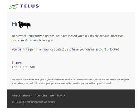 Email: "Your TELUS My Account profile is locked"