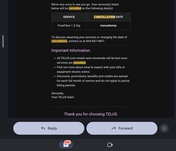 So, I'm now switching. I contemplated on not posting this as I am now no longer a Telus customer. But well, I guess this is also my last post being a Telus customer since 2021.