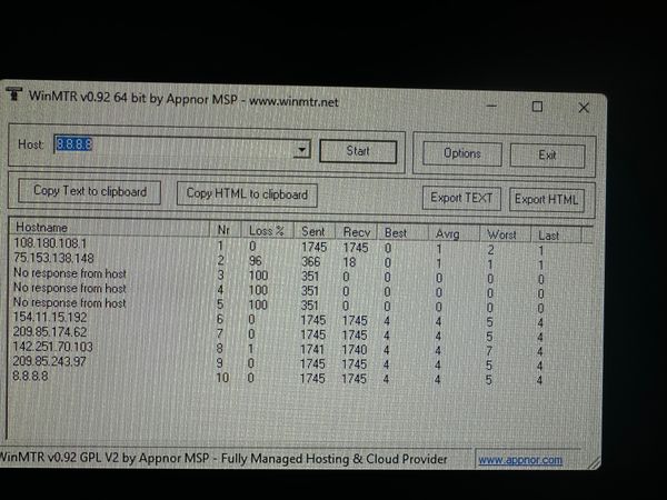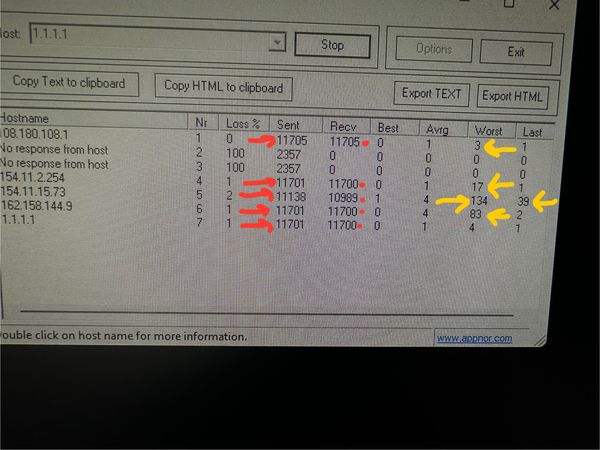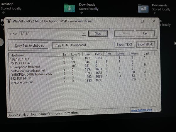 Tracert, WinMTR, PingPlotter to 1.1.1.1 and 8.8.8.8