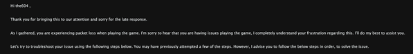 Although WinMTR does not show packet loss, I am including a screenshot of an email from PUBG confirming packet loss during gameplay. This serves as additional evidence that packet loss occurred during real-time use. I am also including the results of two long-duration WinMTR tests to 1.1.1.1 and one long-duration test to 8.8.8.8 at the end of this post. The spikes starting with the IP addresses 154.11.15.73 for 1.1.1.1 and 154.11.15.192 for 8.8.8.8, which accumulate cumulatively, clearly indicate that the latency and jitter issues begin on the Vancouver → Seattle segment within the TELUS backbone and increase cumulatively from that point onward.
