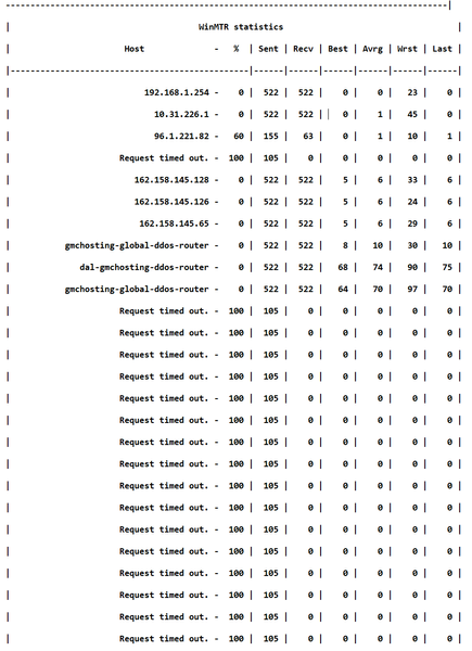 WinMTR shows