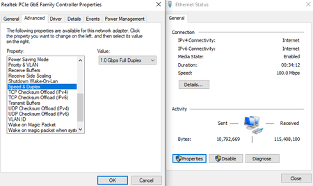 Network adapter stuck at 100mbps
