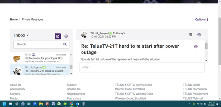 When you get asked/told to send us a private message. TELUS_Support At the top right hand of the page is an envelope. Click on that and you should be able to send us a private message. NOT easy ...