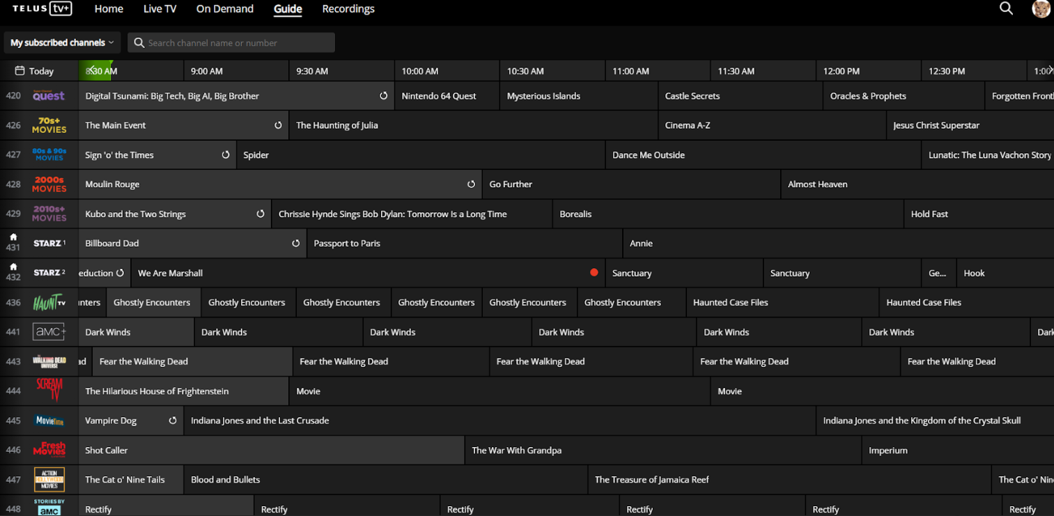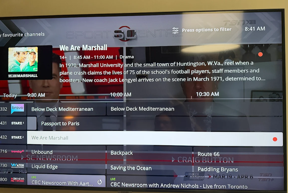 Note how the program 'We Are Marshall' still shows it, even when scrolling sideways in the guide.
