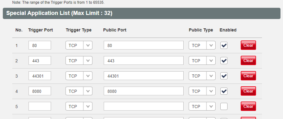 Network > Firewall > Special Applications :