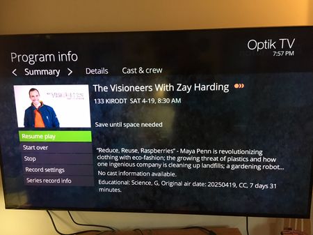On my PVR I have set as a series the program "The Visioneers With Zay Harding" on KIRO ch 133, which is seen each Saturday. On April 12, my PVR recorded the show for that day, and also started to...