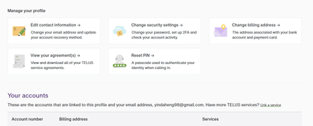 With some sleuthing I found it when I switched back to the old version of the My telus page, it is not in the My Profile tab there either, but as a link in the Telus Rewards box halfway down the page.