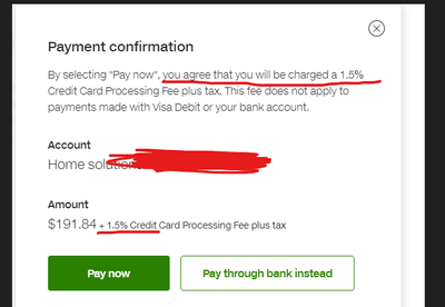 Why is your site still trying to apply 1.5% fee on a Visa DEBIT card...