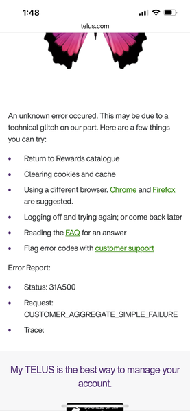 Telus rewards error