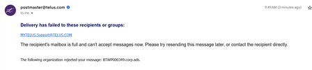 Because I got a bounceback that the Telus Support mailbox was full when I tried to email, I'm putting this here in the hopes someone will see it: