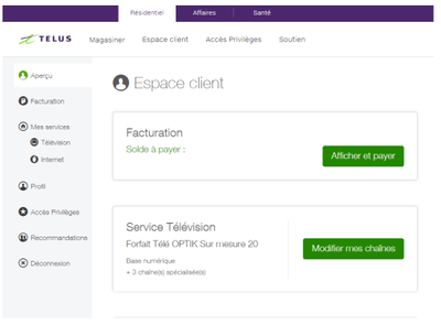 - Une fois que vous avez accès à votre compte, sélectionnez Télé Optik à gauche.