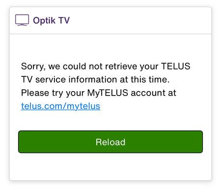 So im having trouble remove an account on my telus account that i never had the intention to keep, i was given the wrong account number and now its stuck on my account, which i am unable to remove. i tried to call get help over customer service but they couldnt help me at all. is there no way to remove it off the account? will the charge automatically go to me? so i came to the forums. asking for help as i do not want someone elses account on my telus account.1.3KViews1like3Comments“Sorry, we could not retrieve your TELUS TV service information at this time.” On MyTelus